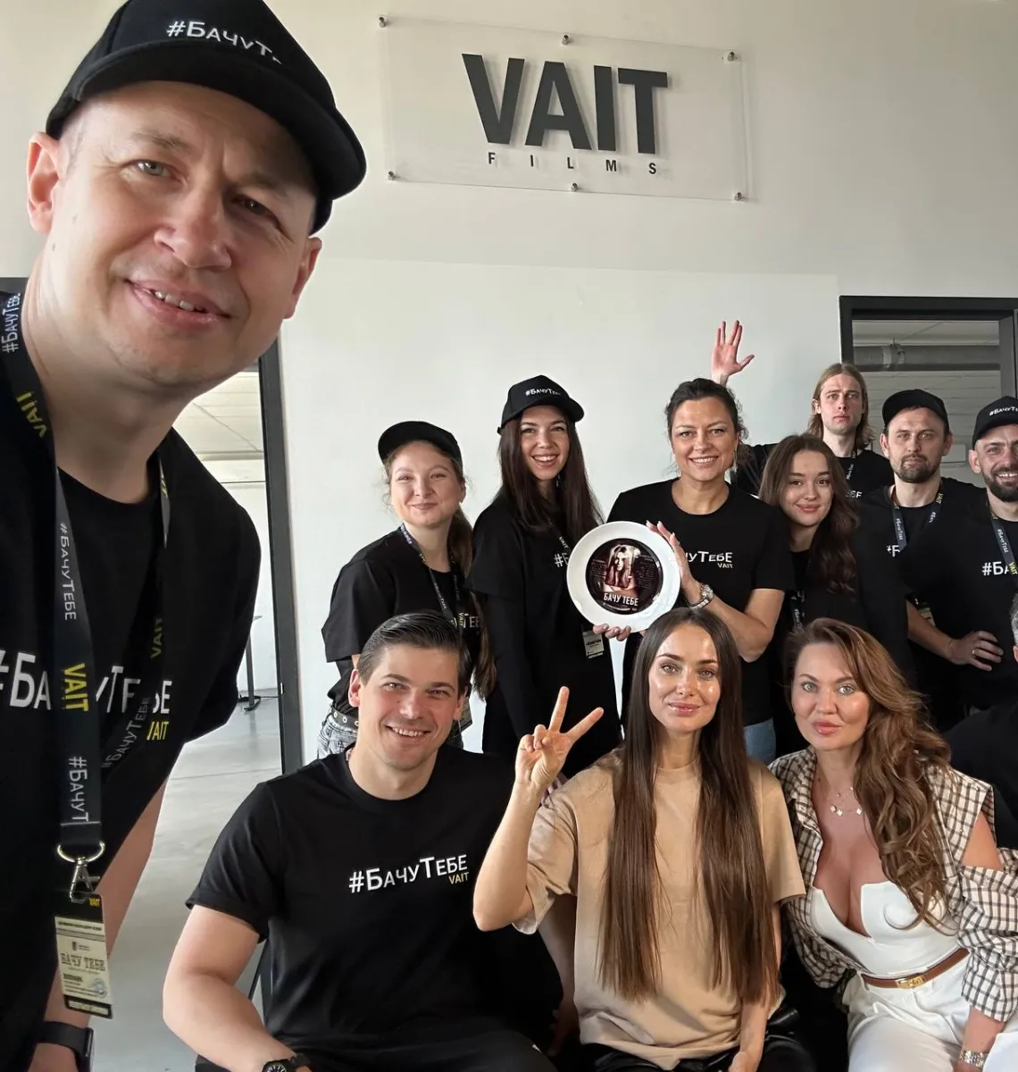 Ксенія Мішина (в центрі), Анна Саліванчук (праворуч) та знімальна група фільму «Бачу тебе». Фото: Держкіно