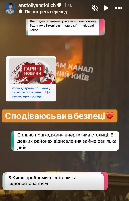 Телеведучий та журналіст Анатолій Анатоліч звернувся до підписників із словами: