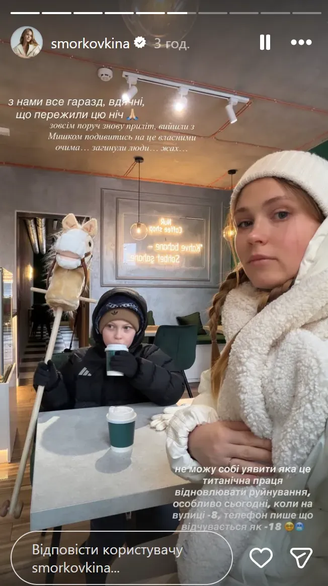 Як відомо, Анна вийшла на зв’язок після атаки та зізналася, що поруч із її будинком стався «приліт», унаслідок якого загинули люди. За словами акторки, через обстріл у їхньому домі зникли світло, тепло та вода. З огляду на це вона разом із сином Михайлом вирішила вийти надвір і покататися на льодянці.
