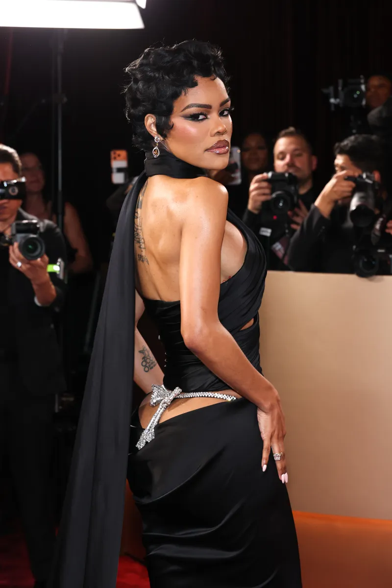 Модною сенсацією церемонії стала Теяна Тейлор, яка з’явилася на сцені в сукні з відкритою спиною, що демонструвала діамантові стрінги. Акторка не лише сміливо обіграла образ, а й використала момент для емоційної промови про видимість і силу темношкірих жінок у кіноіндустрії.
