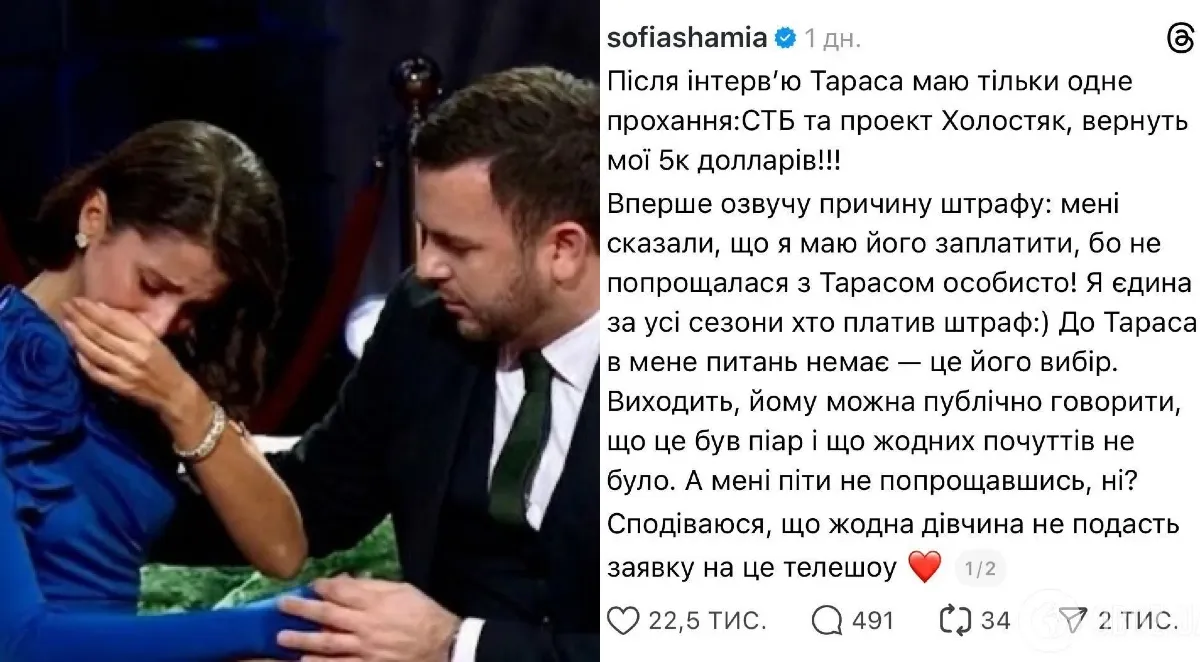 Кадр з пост шоу та пост Софії у Threads. Колаж: Blik.ua