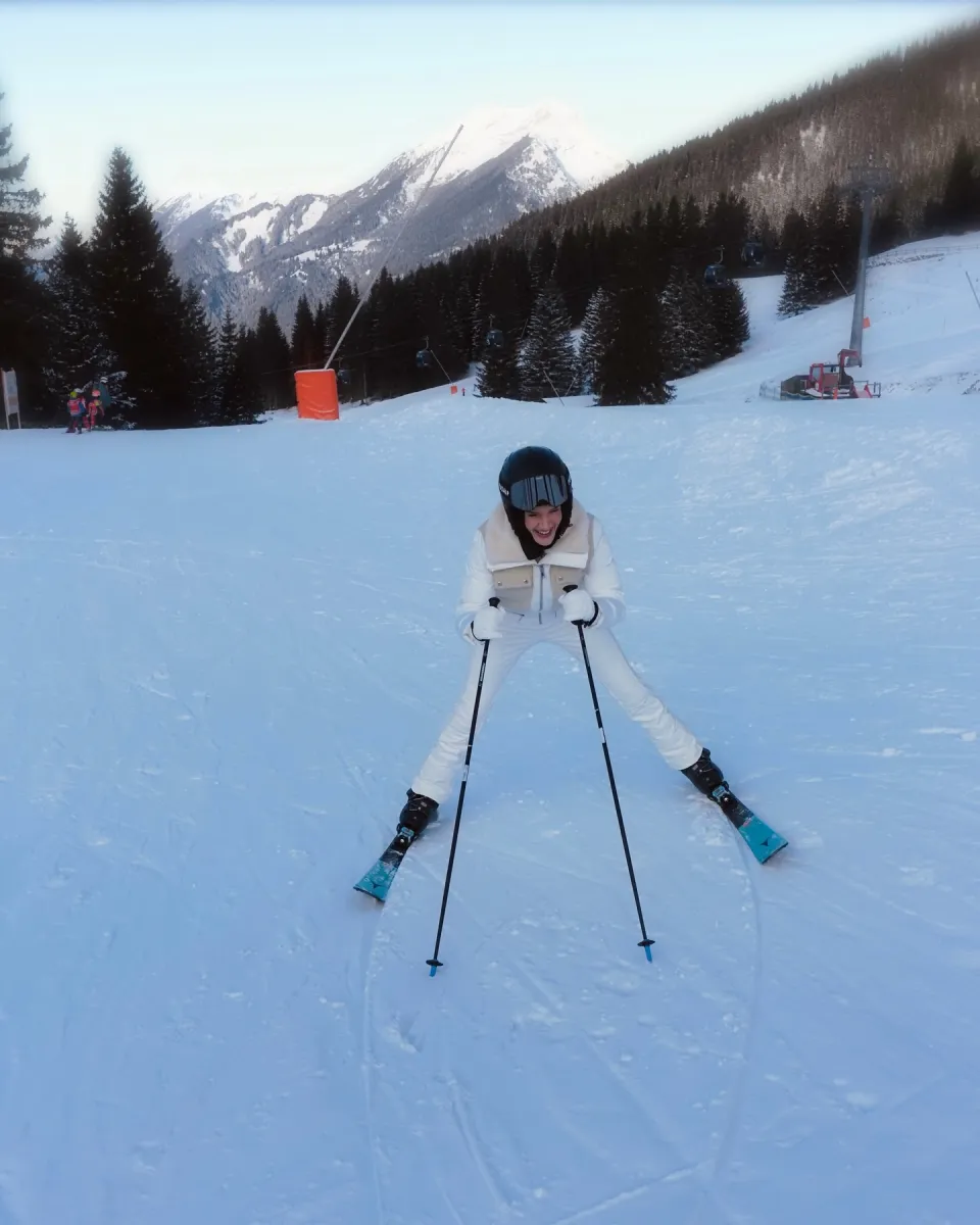 Модель також змінила кілька лижних костюмів, демонструючи власні навички катання. На інших фото вона позує з донькою, яка, здається, не менше за батьків насолоджується зимовою пригодою.
