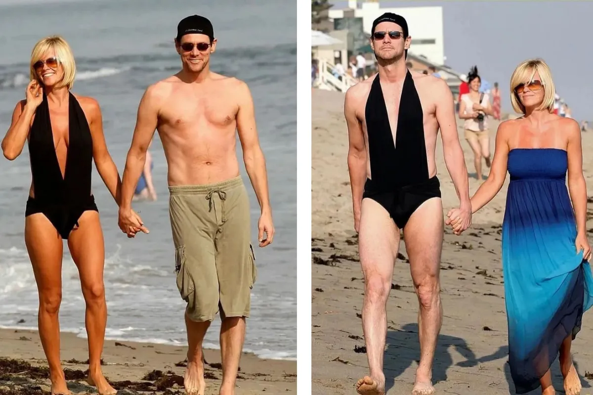 Джим Керрі з дружиною на пляжі. Фото: Інстаграм