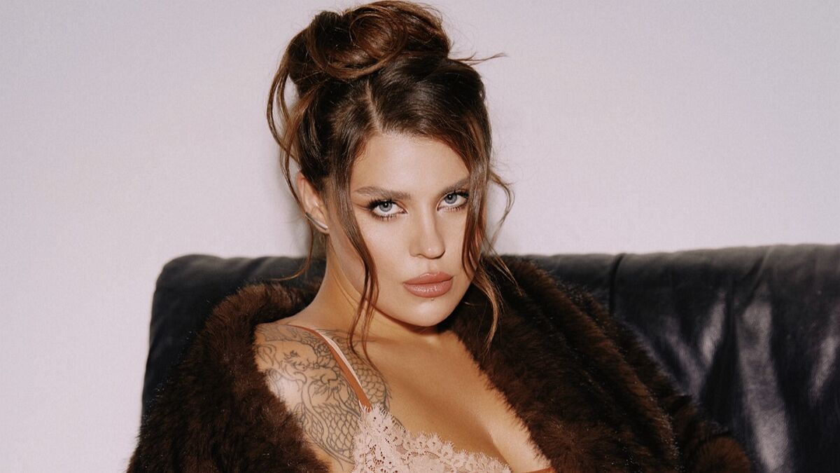 Образ співачки – поєднання гламурної естетики й провокації. Вільна зачіска, глибокий погляд і контраст фактур створюють атмосферу впевненості й гри.
