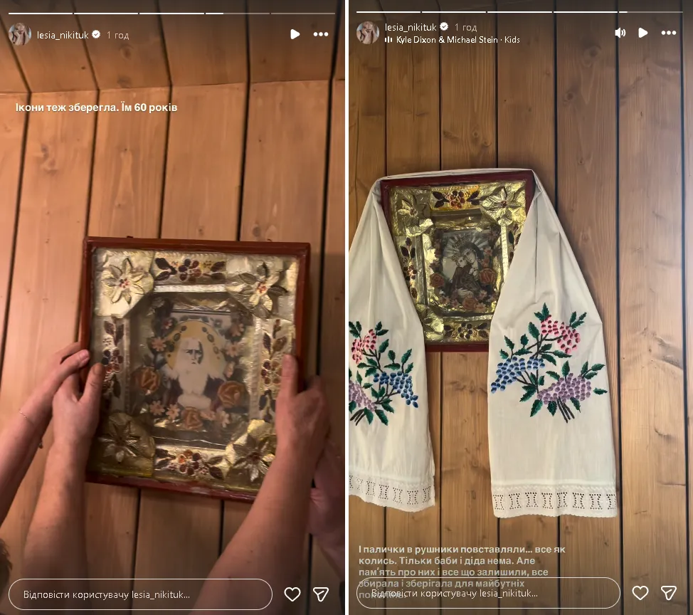 У сторіс Леся розповіла, що разом із мамою розвішала рушники у вітальні та повернула на стіну ікони, які довго зберігалися в родині. Вона додала: