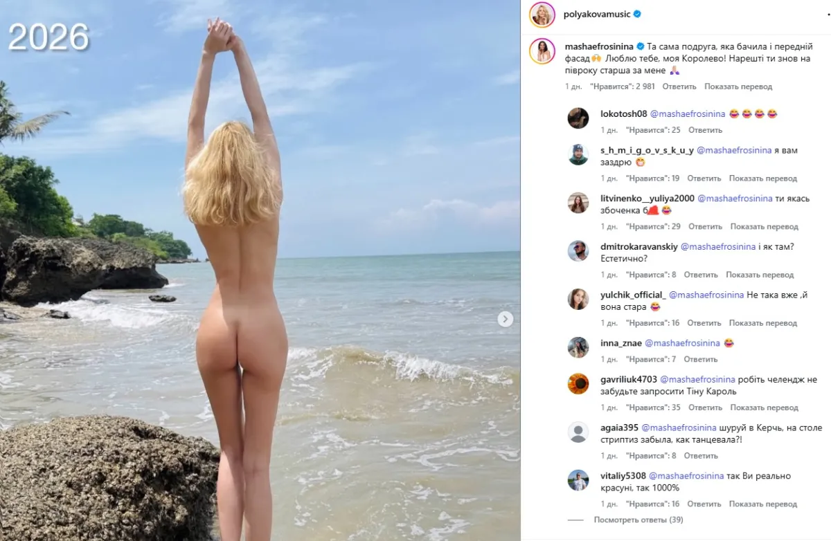 Співачка зазначила, що цей момент став для неї символічним — втіленням внутрішньої сили, краси та прийняття себе. Полякова продовжила багаторічну традицію, розпочату ще 2006 року, коли вона вперше опублікувала подібні світлини. Наступне фото у схожому стилі з'явилося 2016 року, а зараз артистка знову вирішила продемонструвати тіло як символ жіночої свободи.