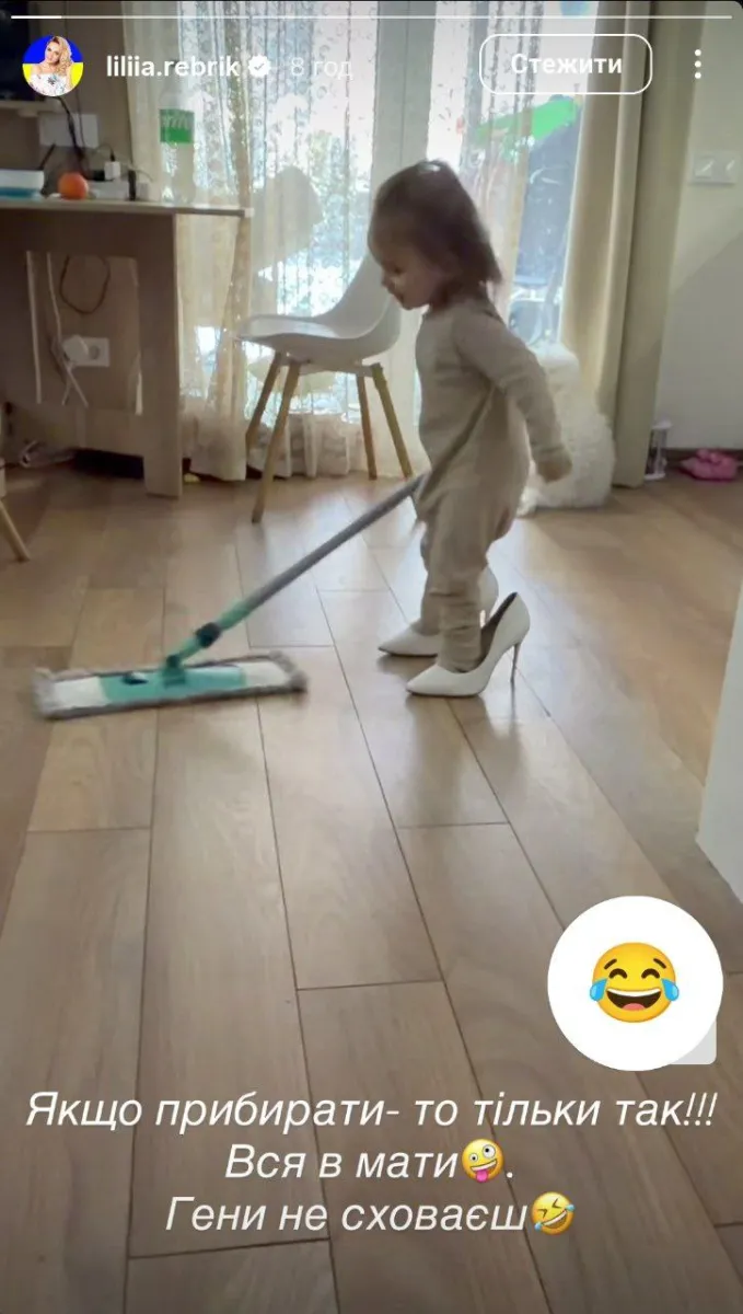 «Вся в мати»: Лілія Ребрик показала, як її однорічна донька прибирає кімнату у підборах
