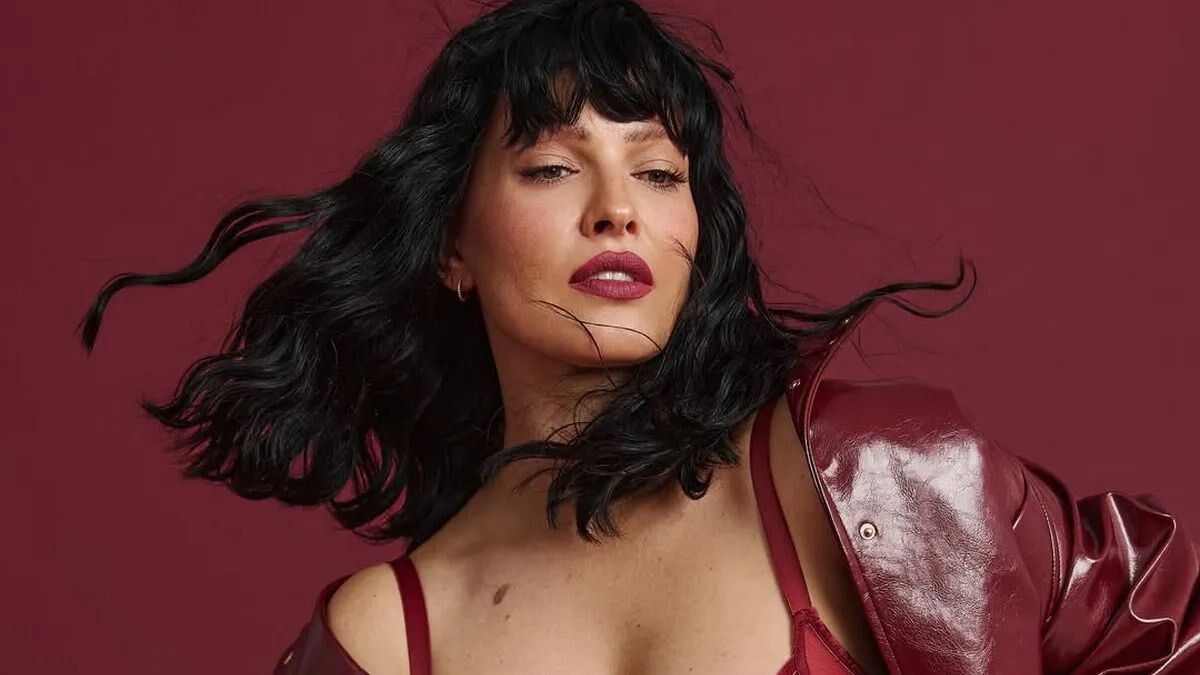 На знімку модель постала у чорному вбранні, яке нагадує образ «фатальної жінки», з яскравим макіяжем у стилі смокі-айз.
