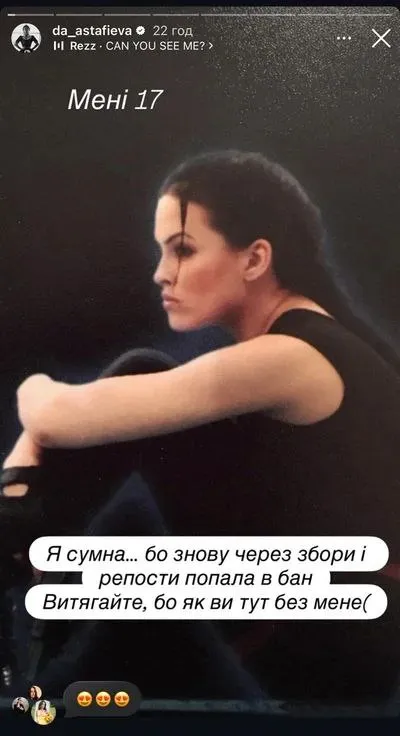 Як зізналася зірка, її сторінка, на якій вона часто публікує збори та робить репости, потрапила в тіньовий бан. Саме тому Астаф’єва вирішила поділитися раніше невиданою архівною світлиною, сподіваючись на активну реакцію підписників.
