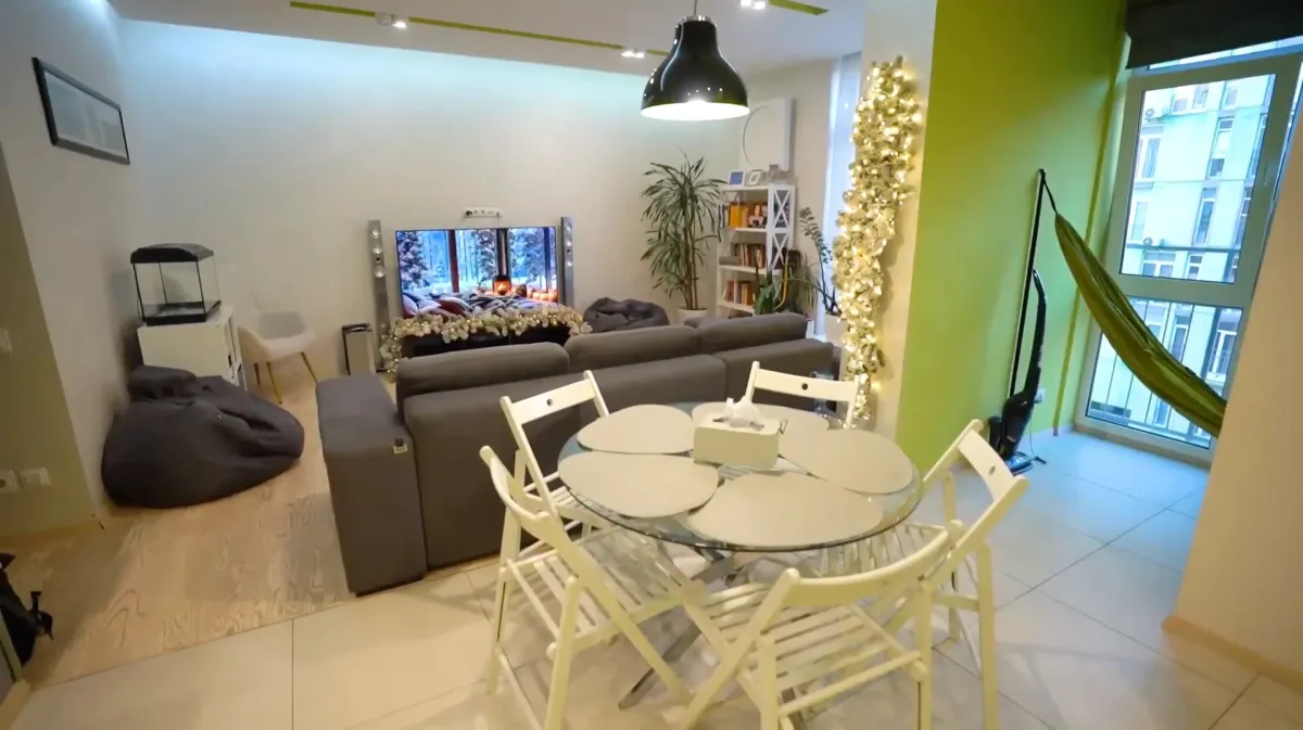 Проте, попри всі труднощі, вони адаптувались до нових умов та створили затишок у своєму домі, а в самій квартирі особливу атмосферу підтримують стильні деталі: від коридору до дитячої кімнати, де навіть є великий гамак для відпочинку.