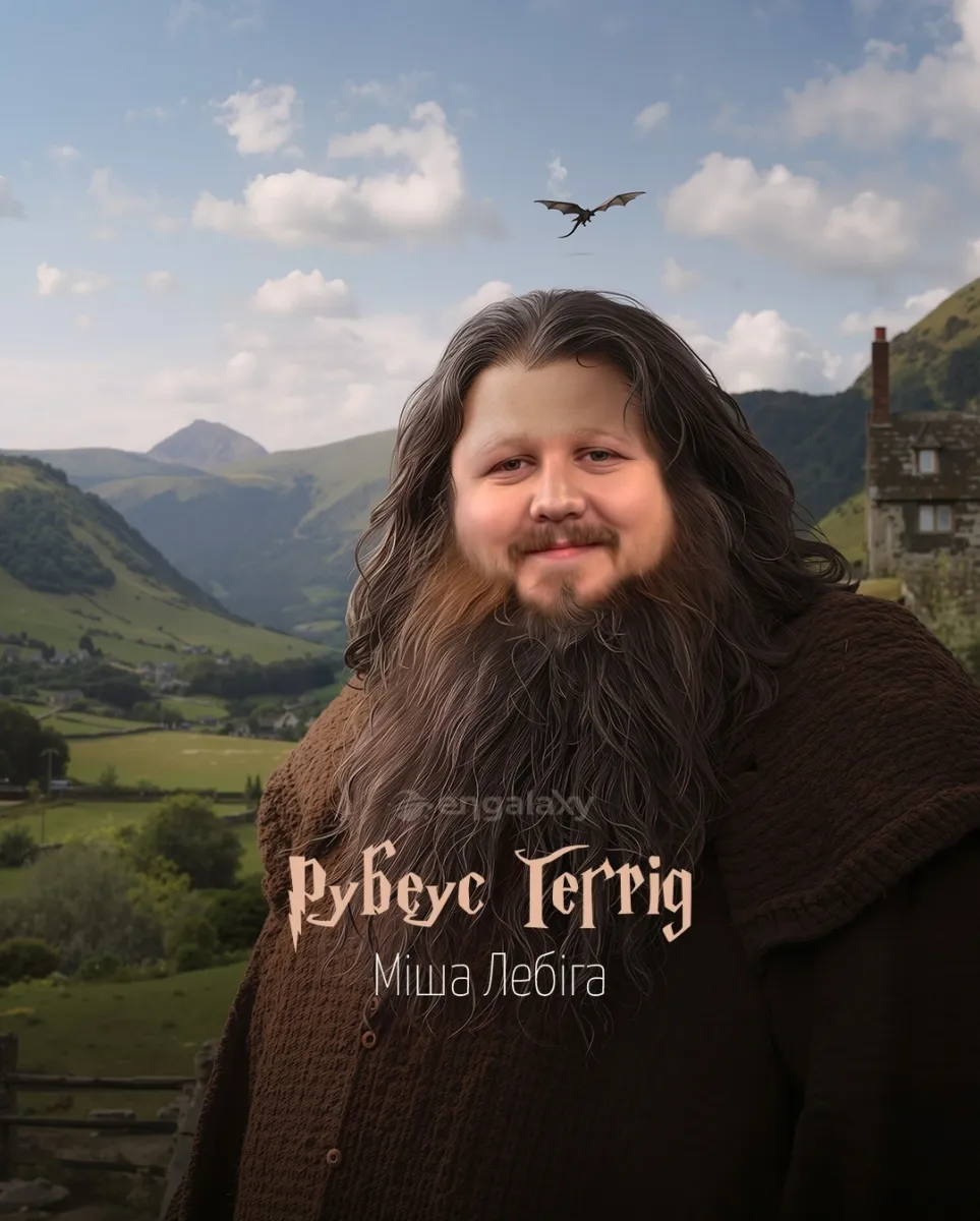 Також знайшлося місце для популярного блогера Михайла Лебіги, який виступив у ролі Рубеуса Гегріда.