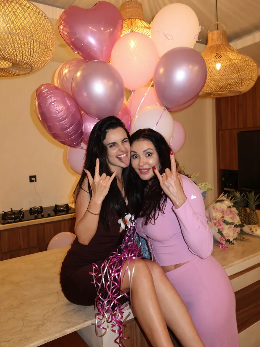 На фото Анна та її мама, співачка Джанна Трінчер, сидять на кухонній стільниці, усміхнені та щасливі. Позаду – велика композиція з рожевих, білих і фіолетових кульок, серед яких є й серця. Атмосфера – святкова, тепла, домашня.