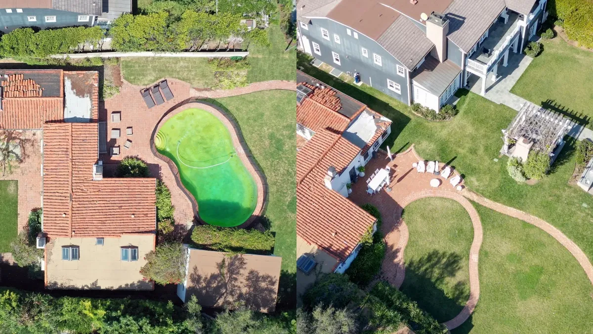 Аерофотознімки показують: замість культового басейну з іспанською плиткою, яку, за чутками, обирала сама акторка, тепер простягається трав'яний газон. Сусідня ділянка має новий особняк із сучасним басейном.
