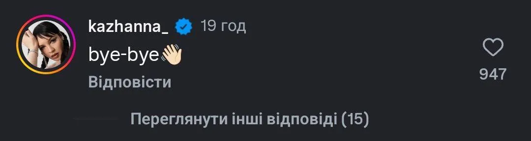 Сама Кажанна лаконічно підтвердила завершення історії співпраці, залишивши під публікацією короткий коментар: «bye-bye».