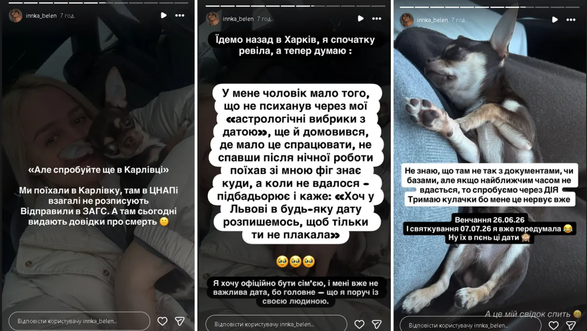 Переможниця «Холостяка‑13» та волонтерка Інна Бєлєнь розповіла, що їй і нареченому Івану втретє відмовили в укладанні шлюбу. Пара обрала особливу дзеркальну дату – 02.02.2026 – і сподівалася нарешті офіційно стати подружжям, однак у РАЦСі їх не розписали.