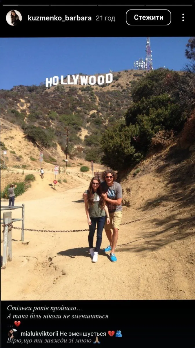 Барбара Кузьменко зізналася, що цей біль не вщухає навіть через десятиліття після трагедії. Вона поділилася щемливими спогадами про часи, коли тато був поруч, та опублікувала сонячний кадр із Каліфорнії, де вони разом позують на тлі легендарного напису Hollywood.