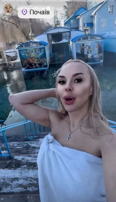 У своїх stories артистка поділилася кадрами з поїздки до купальні Святої Праведної Анни. Ця знаменита святиня на Рівненщині, неподалік від Почаївської лаври, відома цілющою водою, насиченою сріблом і кремнієм. Попри те, що температура в джерелі стабільно тримається на рівні +6…+10°C, СолоХа зважилася на занурення у справжній мороз.