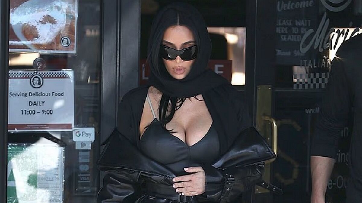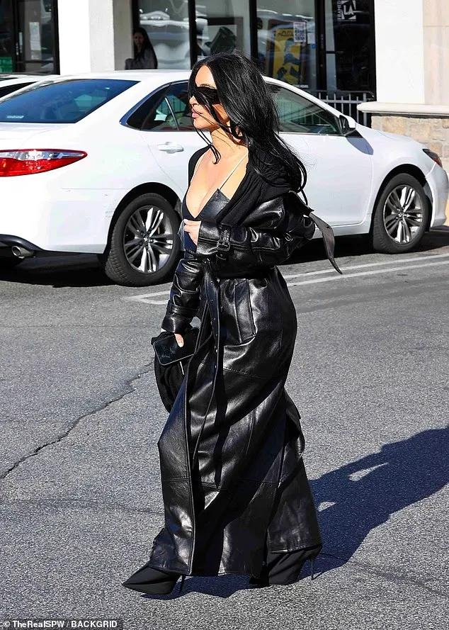 У Калабасасі Кардаш'ян вийшла у стильному чорному шкіряному образі: короткий топ, довге пальто та акцент на декольте. Зірка виглядала так, ніби вийшла на подіум, а не з аеропорту.