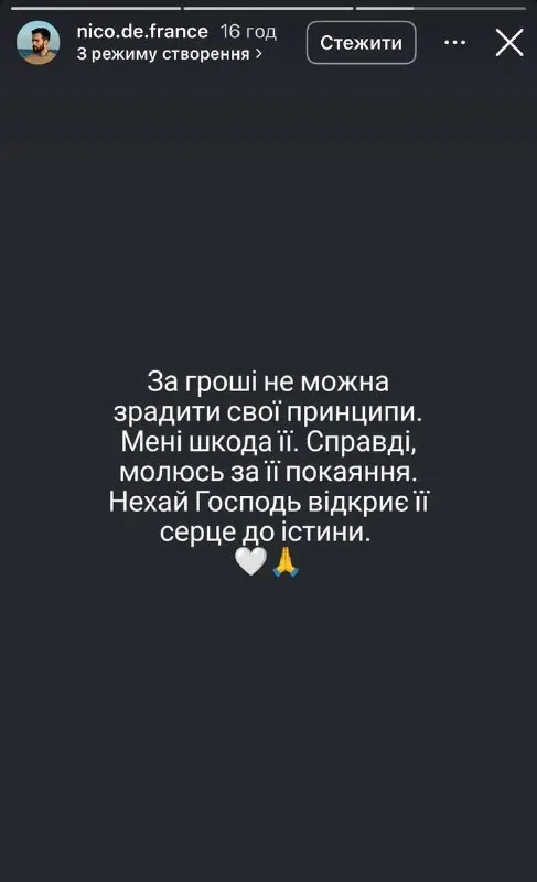 «За гроші не можна зрадити свої принципи. Мені шкода її. Справді, молюсь за її покаяння. Нехай Господь відкриє її серце до істини», – додав україномовний француз.