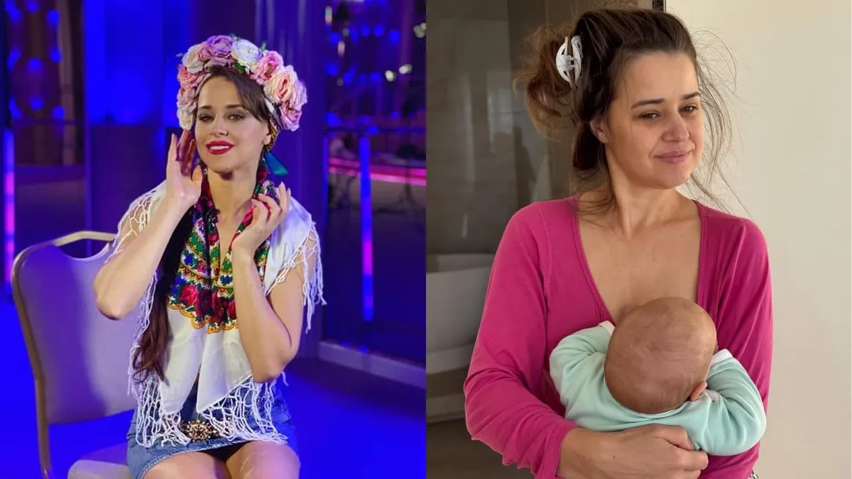 На одному фото вона з’являється в українському образі 2022 року, а на іншому — у домашньому вбранні, тримаючи на руках малюка.