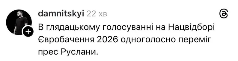 Фінал Національного відбору на пісенний конкурс Євробачення викликав бурхливу реакцію у соцмережах. Українці активно обговорювали шоу та створювали жарти й меми, перетворивши трансляцію на окреме інтернет-явище. Перемогу здобула артистка LELÉKA, яка отримала найвищі бали і від журі, і від глядачів.