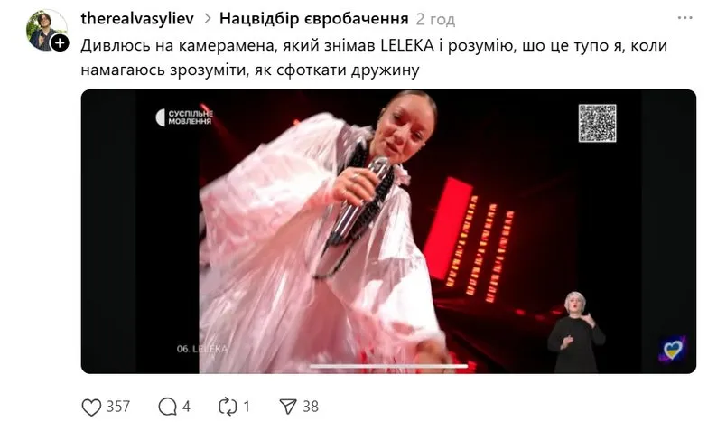 Трохи дісталося і переможниці Нацвідбору. І тут йдеться, скоріше, про геніальну роботу оператора, який намагався вгодити LELEKA.