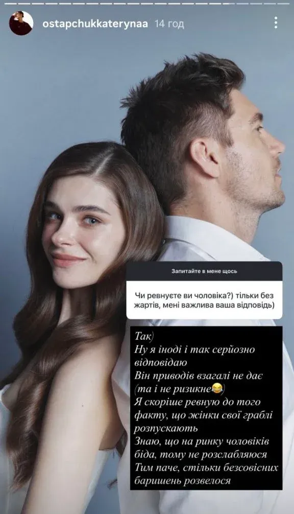 У своєму Instagram жінка влаштувала сесію запитань-відповідей із підписниками. Серед численних тем не обійшлося без розмови про ревнощі, адже Катерина раніше неодноразово наголошувала, що ніколи не пробачила б зради.