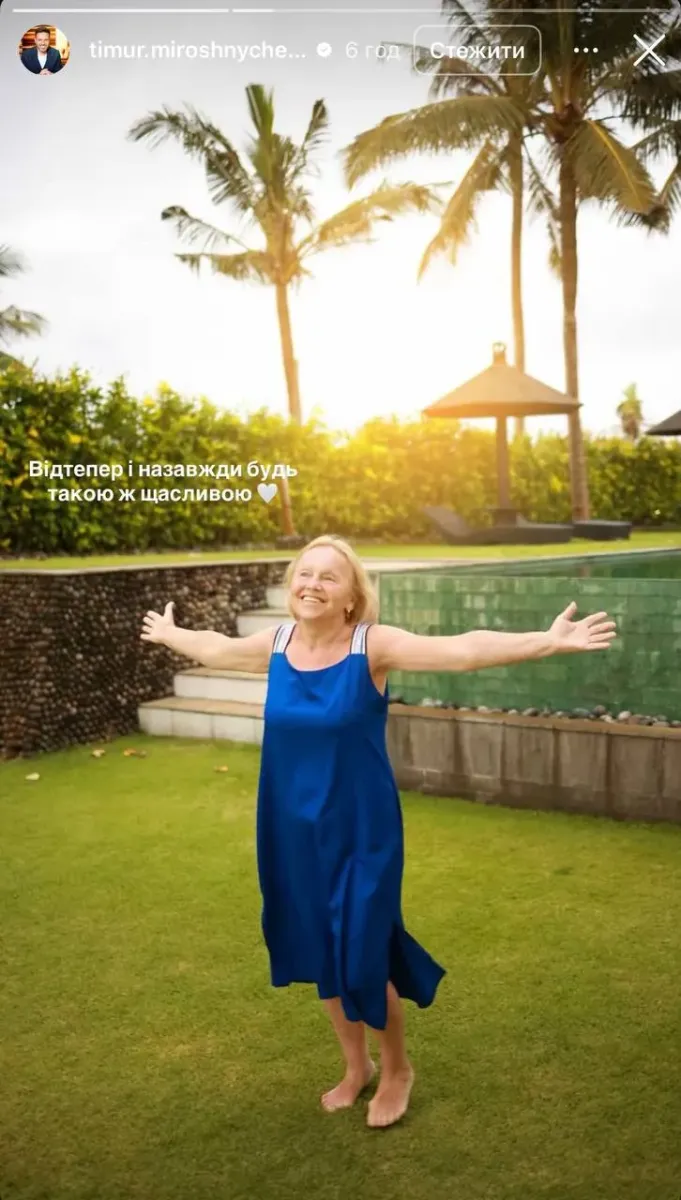 На честь свята ведучий опублікував рідкісні кадри з мамою, зроблені під час їхньої спільної відпустки в теплих краях. У синій сукні на тлі екзотичних пейзажів іменинниця виглядала надзвичайно щасливою та натхненною.