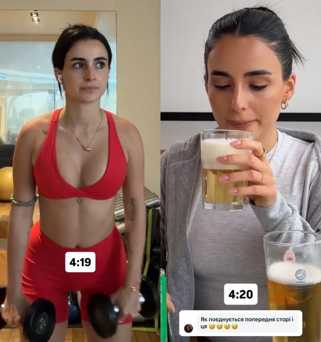 Найбільше фоловерів збило з пантелику навіть не саме поєднання напоїв, а таймінг публікацій. Буквально за мить до «пивної» сторіз Трінчер позувала у спортивному одязі з гантелями в руках і серйозно міркувала про те, як їй хочеться мати «класну суху форму».