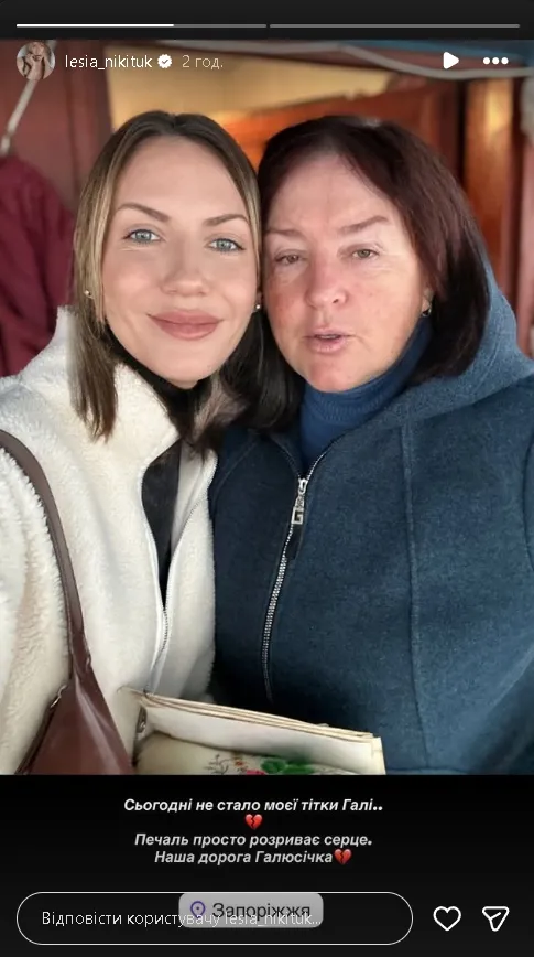 Зараз родина зірки готується до прощання з пані Галею. Леся зізналася, що печаль буквально «розриває серце», адже тітка була для неї справді важливою та близькою людиною.