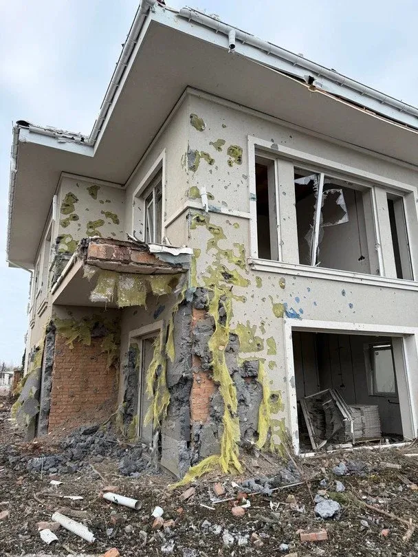 Будинок Володимира Остапчука у селі Вишеньки на Київщині зазнав серйозних пошкоджень після ворожого обстрілу в ніч проти 22 лютого. Про це повідомила його дружина Катерина Полтавська у своєму Telegram-каналі, опублікувавши фото наслідків. За її словами, вибухова хвиля вибила вікна та зруйнувала частину фасаду.