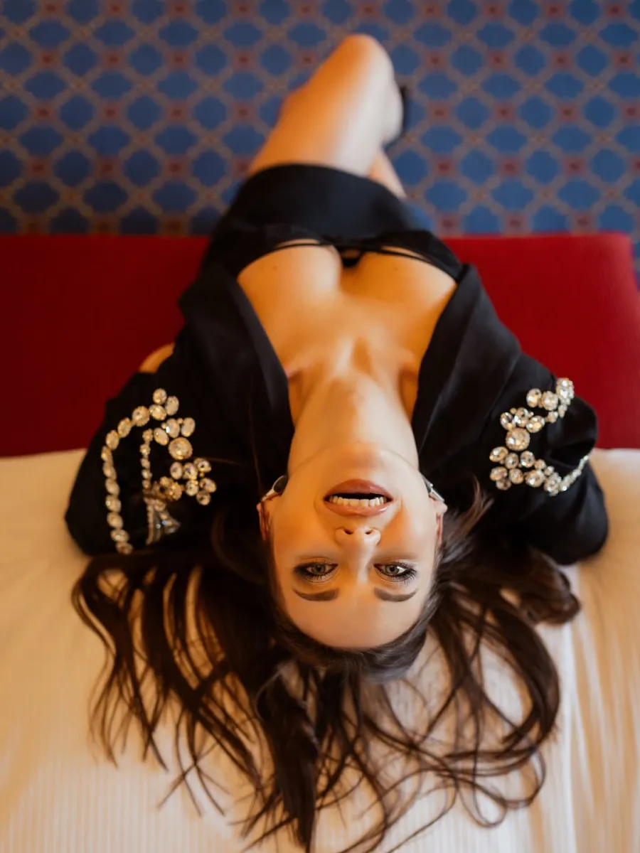 Анна Саліванчук оприлюднила в Instagram кадри, зроблені в готелі, де вона позує у жакеті та мініспідниці.