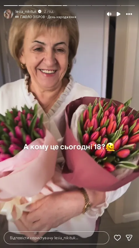 «А кому це сьогодні 18? Цілий день будуть сюрпризи, а завтра вже концертна програма. Сиджу, розкисла, як остання тряпка. Не віриться, що мамочці 70 років», – сказала Леся, не приховуючи емоцій.