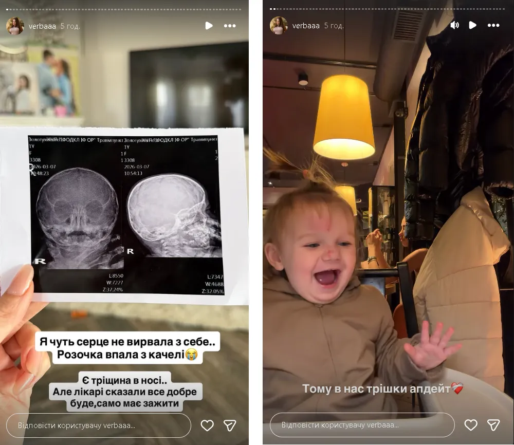«Я ледь серце не вирвала з себе… Розочка впала з каруселі. Є тріщина в носі», – написала вона, додаючи, що найважче було бачити біль дитини й намагатися залишатися спокійною.