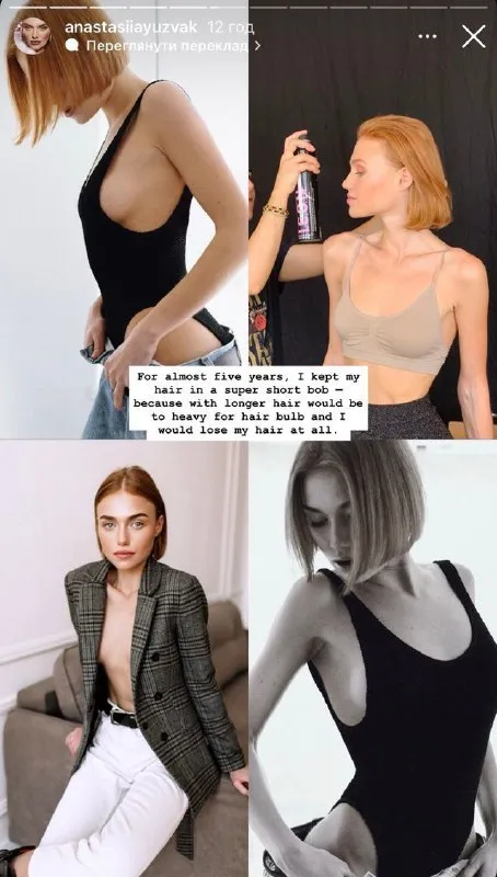 Фіналістка згадала свій жахливий раціон: по 200-800 калорій на день. У неї часто траплялися зриви і так було постійно. Після такої дієти у неї випало майже все волосся, почалися проблеми із зубами та пішов гормональний збій. Дівчину це не хвилювало – вона хотіла бути худою. Через облисіння Анастасії п'ять років довелося ходити з короткою зачіскою, адже волосся просто не трималося на голові.