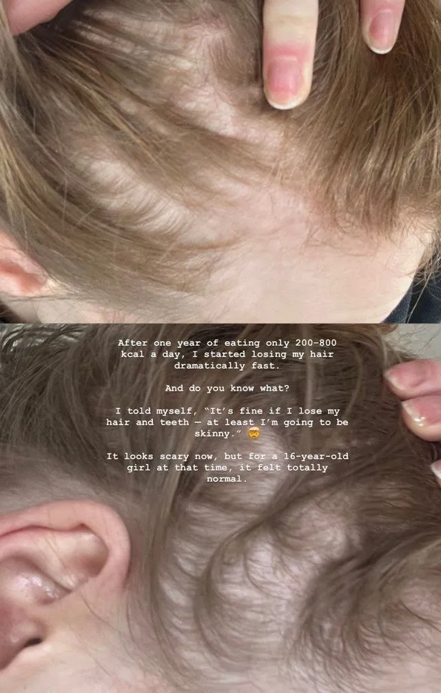 Дівчина показала підписникам, який вигляд мала в 11 та 15 років. Вона згадала, що в неї було шикарне та густе волосся, але більшість вона втратила пізніше – через анорексію і булімію.
