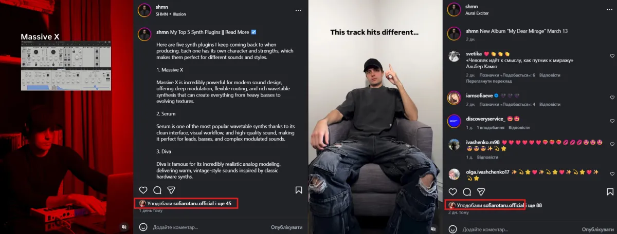 Однією з перших свої коментарі під відеопрезентацією альбому залишила єдина сестра Анатолія, Софія Євдокименко. Тривалий час вона живе у США. Онучка Софії Ротару залишила смайлики сердець та вогню. Зазначимо, що на Instagram SHMN підписано понад 20 тис. фоловерів. Втім публікації молодого артиста, якому 23 березня виповниться 31 рік, здебільшого набирають менш як 100 лайків.