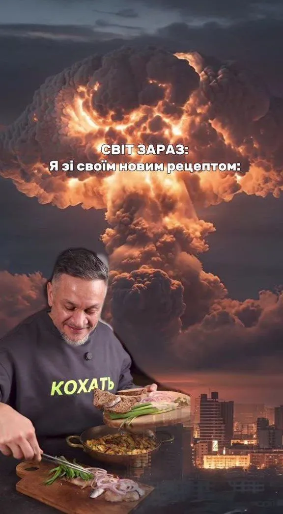 Кулінар показався на фоні вибухів та вогню через війну та ситуацію у світі і зазначив, що незважаючи на проблеми він завжди старається викладати новий рецепт, щоб порадувати своїх прихильників чимось смачненьким.