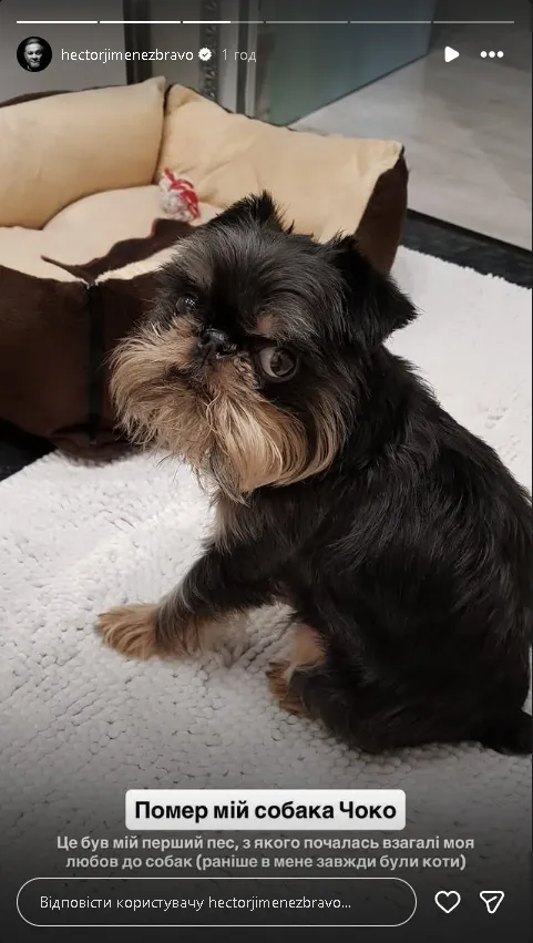 «Помер мій собака Чоко. Саме з нього почалася моя велика любов до собак», – написав Ектор, додавши, що саме цей пес став його першим і «особливим другом».