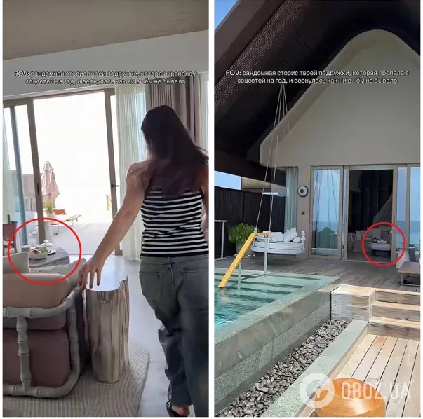 Підозри виникли після того, як Борзікова опублікувала в TikTok ролик із розкішного готелю біля океану. Уважні підписники звернули увагу на характерний столик ромбоподібної форми в кадрі – такі самі меблі видно на фото Повєткіна з його Telegram-каналу. Додатковим аргументом стала помітна засмага на нещодавньому селфі блогера.
