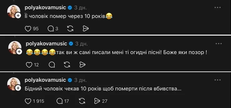 Романова нещодавно почала ділитися подробицями співпраці з Поляковою 20-річної давнини. У своєму акаунті Threads вона публікувала власні інтерпретації та психоаналітичні розбори, а також уривки інтерв’ю чоловіка співачки Вадима Буряковського.