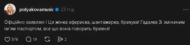 «Офіційно заявляю! Ця жінка аферистка, шантажерка, брехуха! Гадалка з зміненим ім’ям, паспортом, все, що вона говорить, – брехня!»