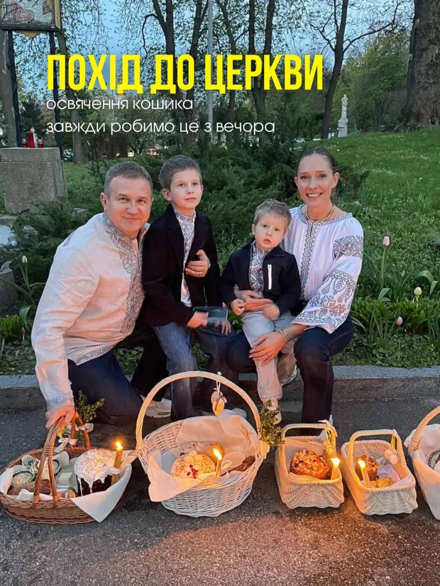 Ще одна їхня традиція – обновки. Родина щороку купує нові вишиванки, адже, за словами Осадчої, Великдень в Україні давно перетворився на неофіційний Ukrainian Fashion Week. До церкви вони ходять увечері, щоб освятити кошики без зайвого поспіху.