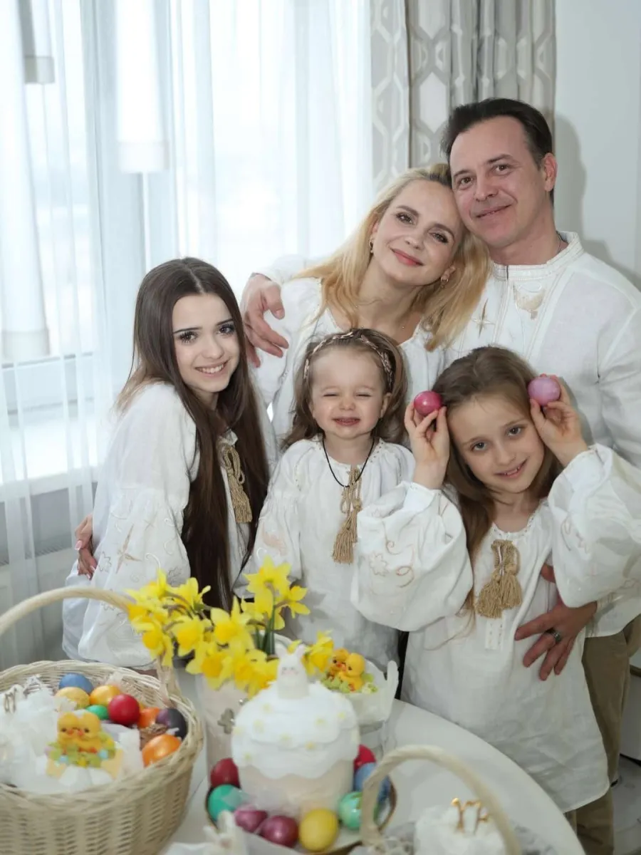 Разом із чоловіком, хореографом Андрієм Диким, та трьома доньками – 13‑річною Діаною, 7‑річною Поліною та 2‑річною Аделіною – вона позувала біля церкви у вишиванках, тримаючи святковий кошик.