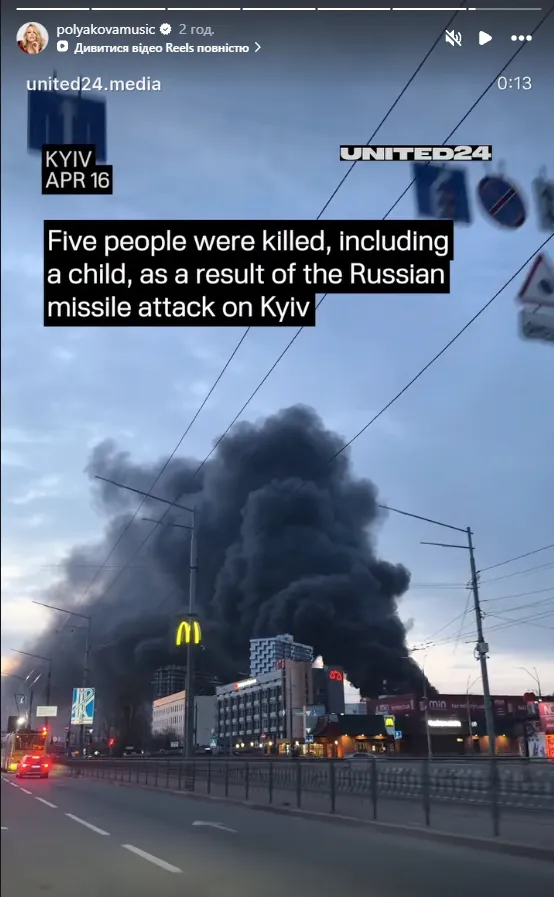Популярна співачка Оля Полякова поділилася у Instagram відео із наслідками нічної атаки, не залишившись осторонь трагедії.