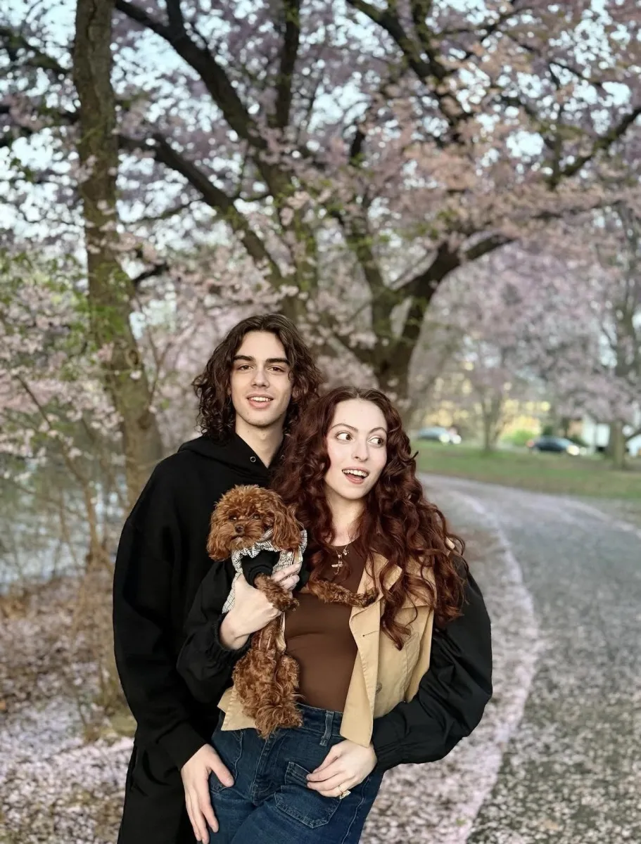 Атмосфера на опублікованому зображенні виявилася надзвичайно затишною. Марія позує на вулиці з песиком на руках, ніжно притулившись до свого коханого. Американець Еден Пассареллі міцно обхопив дружину зі спини. Ця романтична мить зафіксована на фоні дерев у цвіту, які створюють справжній весняний вайб. Відповідний допис з'явився у її профілі в Instagram.