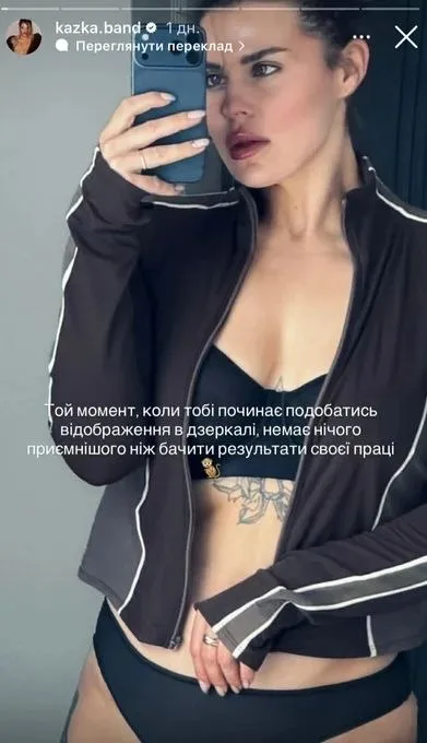 Відома українська співачка Олександра Заріцька, що є солісткою гурту KAZKA, похвалилася помітними результатами тривалого схуднення та зізналася, що їй подобається дивитися на себе у дзеркало. Про це стало відомо з її сторінки в соцмережі Instagram.