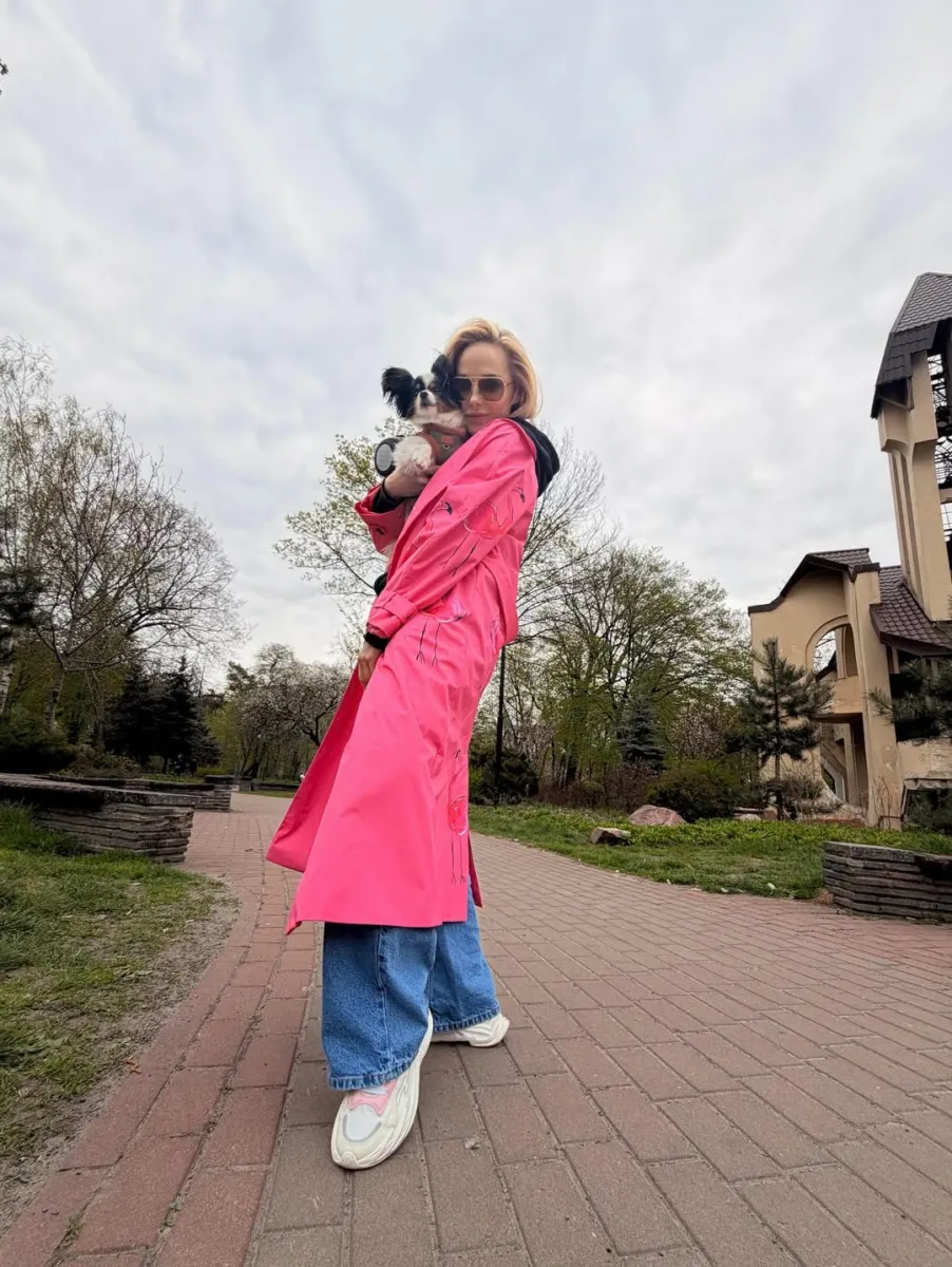 «Насолоджуюсь легким весняним вітерцем»: Дар’я Трегубова показала фото в рожевому плащі з прогулки з песиком