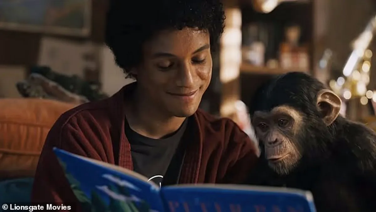 Шимпанзе Баблз та Джаафар Джексон. Фото: кадр із фільму Lionsgate Movies