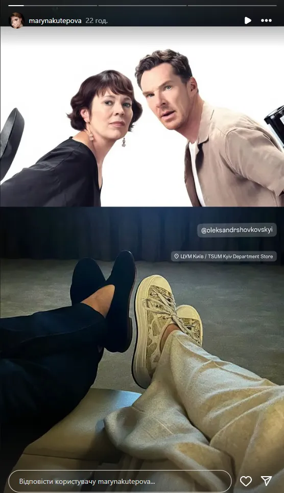 Цього разу жінка опублікувала світлину, на якій вона з чоловіком у кінотеатрі дивиться фільм «Війна подружжя Роуз» з Бенедиктом Камбербетчем у головній ролі.
